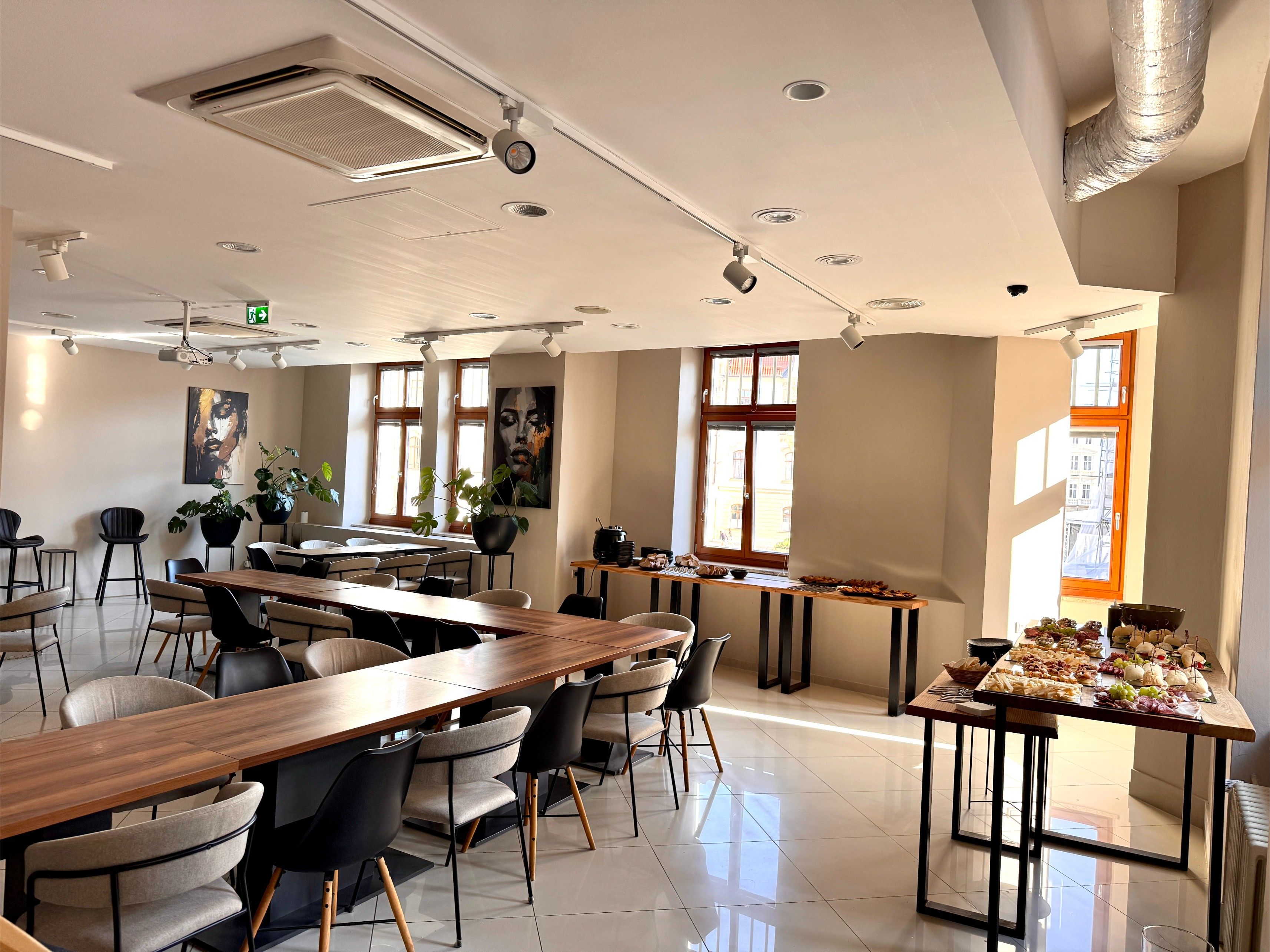 Nabízíme k pronájmu klidné a oddělené prostory, které jsou ideálním místem pro všechny vaše důležité události. Ať už plánujete firemní akci, narozeninovou oslavu, rodinné setkání nebo workshop. Prostor se nachází v druhém podlaží a poskytne vám pohodlné, stylové zázemí. Je vybaven barem s kávovarem, projektorem, vlastním WC a dalším nezbytným vybavením. Kapacita je 55 míst. Díky promyšlenému designu a příjemné atmosféře si u nás užijete nejen práci, ale i chvíle odpočinku a zábavy.